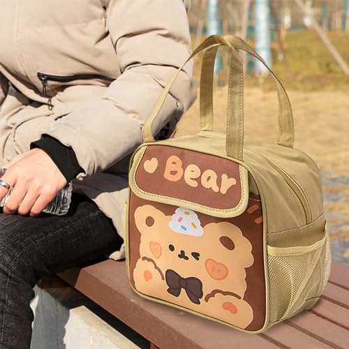 [Design con grande capacità] La parte anteriore di questa borsa da pranzo per la scuola è dotata di un design indipendente. In questa borsa possono essere comodamente conservati utensili come posate o piccoli snack. Il lato è dotato di un design a griglia, in modo da poter riporre facilmente le bevande ed evitare. Prende spazio nella borsa.