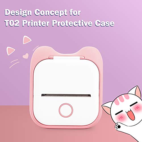 Memoking T02 Custodia Protettiva - Orecchie di Gatto Custodia Morbida in Silicone senza BPA, Compatibile con la Stampante Tascabile Portatile Wireless Bluetooth Mini T02, Rosa