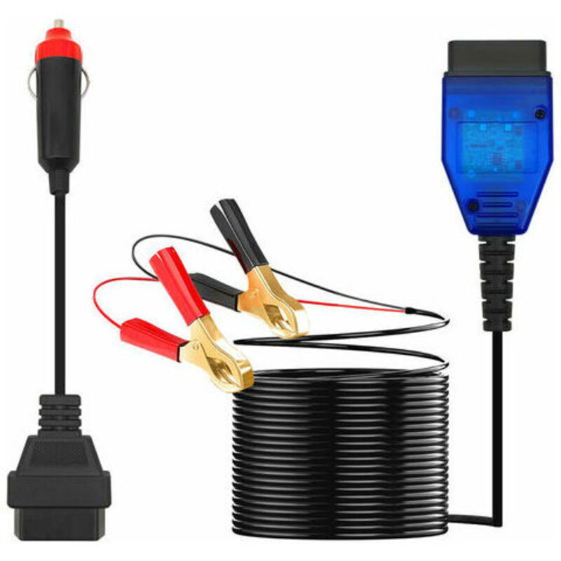 conserva i codici del veicolo e le preimpostazioni elettroniche.Puoi utilizzare questo salva dati per mantenere il computer della tua auto alimentato dalla porta OBDII o dalla presa dell'accendisigari dell'auto mentre stai sostituendo la batteria dell'auto. Il salva dati dell'auto necessita di una batteria aggiuntiva da 12 V come fonte di alimentazione temporanea. È uno strumento molto utile per la manutenzione dell'auto.L'interfaccia di alimentazione di backup ha un cavo super lungo di 2 metri (6,5 piedi). In questo modo puoi sostituire la batteria della tua auto, anche procurandoti la fonte di alimentazione alternativa a 12V di un'altra auto, quando non hai a portata di mano un avviatore di emergenza. Poiché il