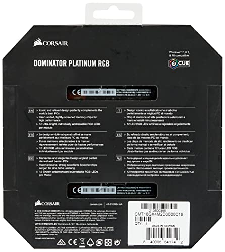 Kit di memoria desktop CORSAIR DOMINATOR PLATINUM RGB 16GB (2x8GB) DDR4 3600 (PC4-28800) C18 1.35V ottimizzaro per AMD, Nero