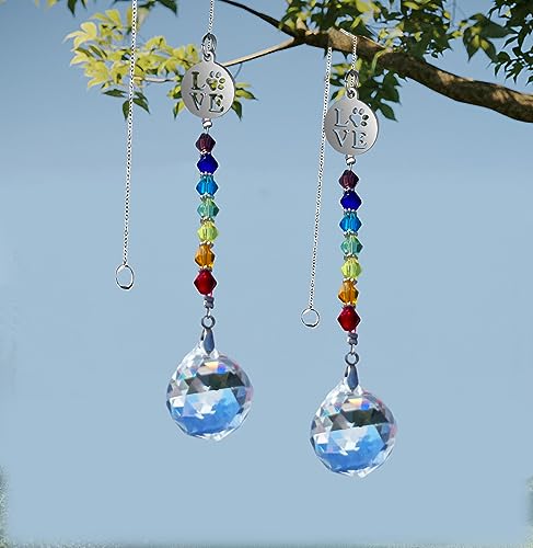 2 pz Pet Dog Memorial Regali Paw Print Sun Catcher Cristalli Prismi Appeso Cane Simpatia Finestra Giardino Decor Vento Chime Rainbow Bridge Regali per Perdita Amico (Palla)