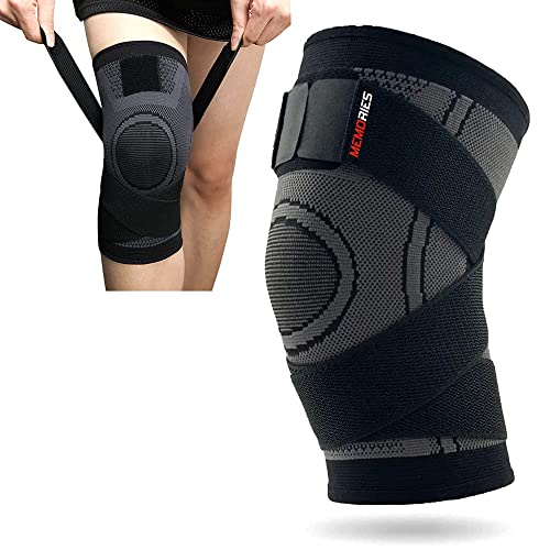 Memories Ginocchiere per menisco e legamenti per artrosi e tendinite per uomo e donna - Ginocchiere per crossfit - Ginocchiere elastiche regolabili per corsa Palestra Fitness Yoga (XL, noir, 2)