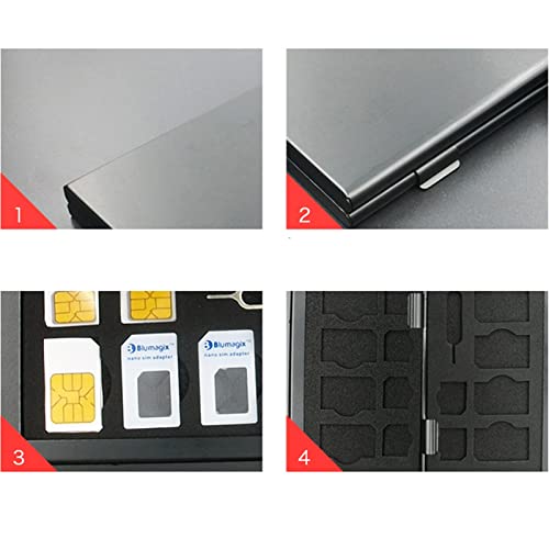 Questa custodia ha 4 slot per scheda SIM e 12 slot per scheda Nano 4 slot per scheda Micro-SIM e 1 slot per ago.