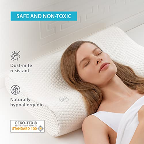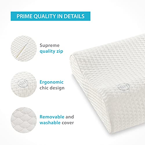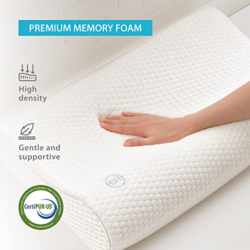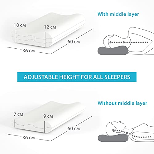 GH Memory Foam Cuscino Regolabile cm. 60x36 | Cuscino Imbottito con Design Ergonomico con Supporto Cervicale Spinale | Cuscino Ortopedico Sagomato Traspirante Atossico con Federa Ipoallergenica