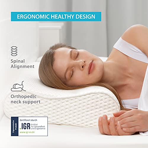 DESIGN ERGONOMICO SALUTARE: Il cuscino ortopedico di sostegno del collo GadHome è certificato IGR - l'Istituto per la Salute e l'Ergonomia, ed è salutare e durevole. Il cuscino è progettato ergonomicamente per dare comfort e adattarsi perfettamente alla forma della colonna vertebrale cervicale, offrendoti un modo più comodo e piacevole per sostenere e alleviare il dolore al collo in qualsiasi posizione durante il sonno.