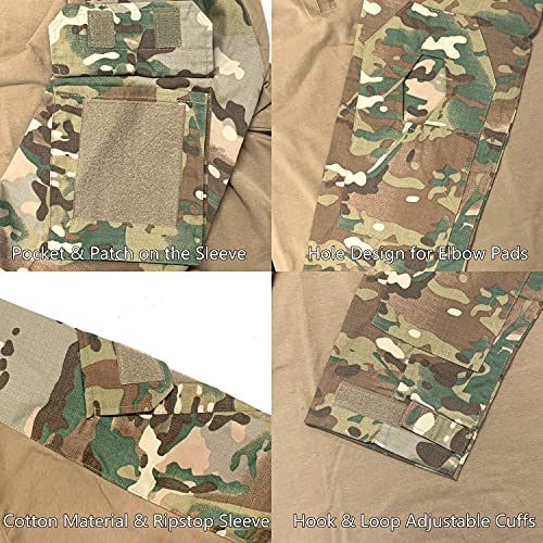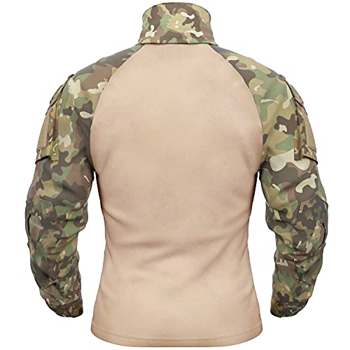 Memoryee Uomo Tattica Militare Camicia Maniche Lunghe Combattimento T-Shirt Camo Slim Fit con Cerniera Tasche 1/4/CP/L