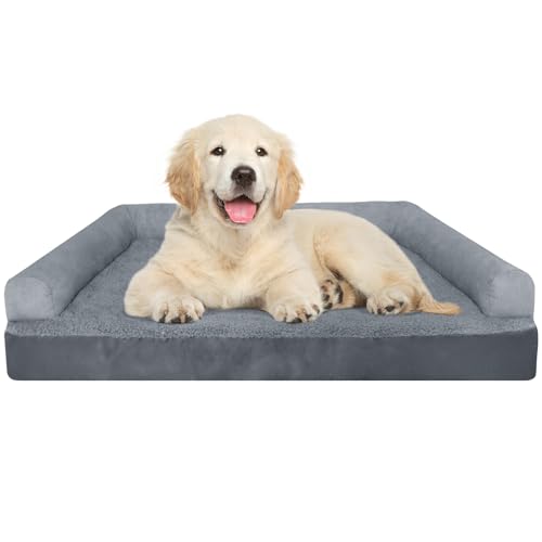 Memows Cuccia Cane Interno Taglia Media, Letto per Cani con tre Lati Rialzati, Cuscino Cane Sfoderabile e Lavabile, Divano per Cani Impermeabile, Cuccia Cani Letto Cane Ortopedico, Grigio, 91x68x20cm