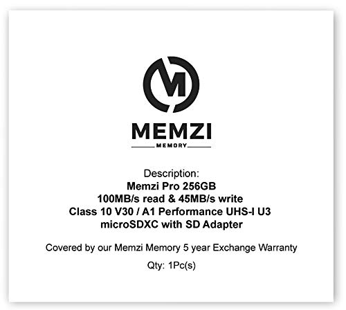 MEMZI PRO 256 GB Scheda di Memoria Compatibile per GoPro Hero 9, 8, 7, 6, Hero9, Hero8, Hero7, Hero6, Max Action Fotocamere - microSDXC 100 MB/s Classe 10 V30 Veloce Registrazione 4K con adattatore SD