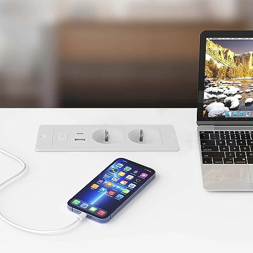 MENAYODA Presa da tavolo a scomparsa, 2 prese da tavolo con USB e tipo C, presa multipla da incasso, per ufficio, cucina (bianco)