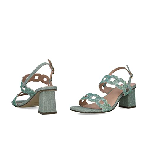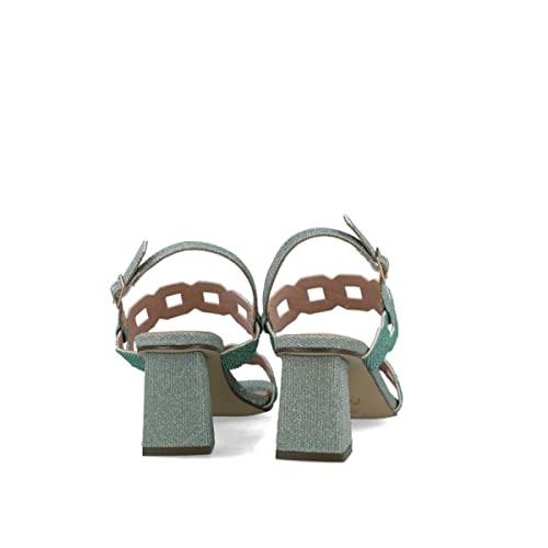 Menbur 22989 Sandali Cerimonia Donna Eosforo Tessuto Verde Tacco Grosso 7Cm Suola Gomma Sintetica