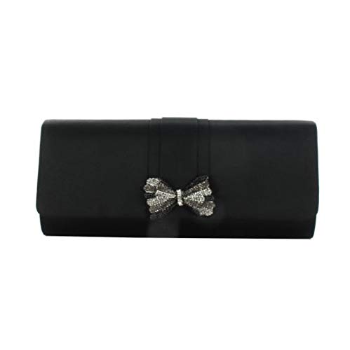 Menbur 84001 pochette in raso nero con fiocco strass