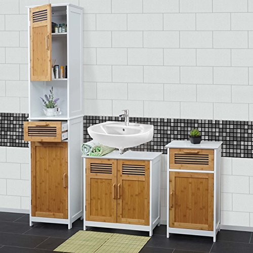 Mendler Arredo Bagno Serie HWC-A85 Legno Bambu e MDF Set sottolavabo, Mobile Alto e Basso 3 Pezzi