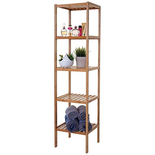 Mendler Arredo Bagno Serie HWC-B18 Legno Bambu a listelle Mobile scaffale 140x34x33cm
