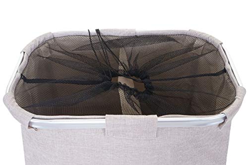 Mendler Cesta Borsa portabiancheria HWC-C34 Tessuto - Laundry 2 Scomparti 82l Beige