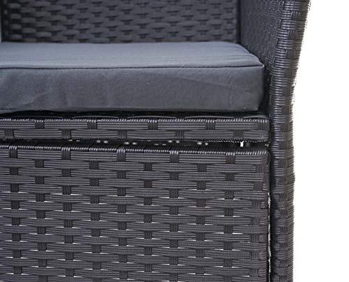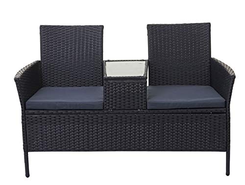 Mendler Divano sofa per l'esterno doppia seduta portavivande HWC-E24 polyrattan nero cuscini grigio