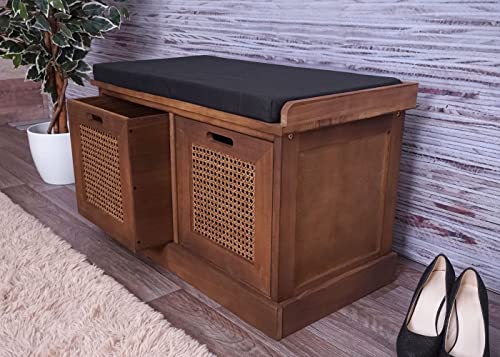 Mendler Panca panchina da Interni con Cuscino 2 Box ceste contenitori HWC-J49 Legno MDF Marrone Nero