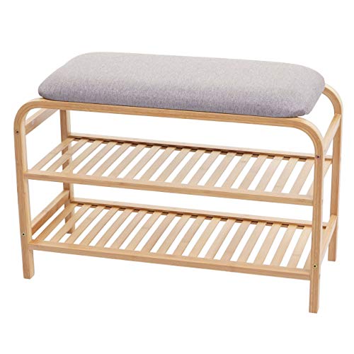 Mendler Panca scarpiera HWC-F72 Seduta Imbottita 30x70x50cm Legno bambù