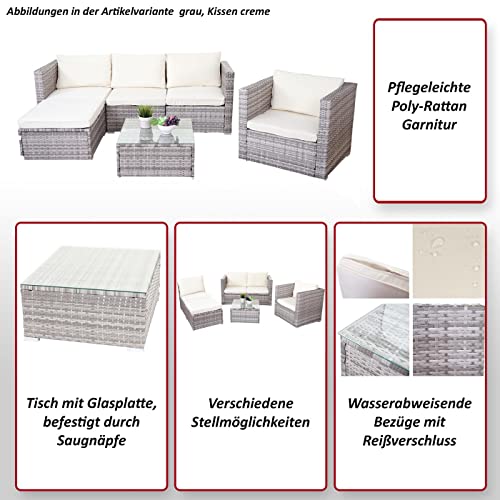 Mendler Salottino da Esterno Giardino Brescia polyrattan Acciaio Nero con Cuscini Antracite