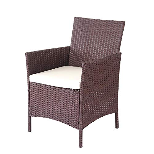 Mendler Salottino da Esterno Giardino HWC-D82 polyrattan Marrone con Cuscini Avorio