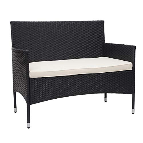 Mendler Salottino da Esterno Giardino HWC-F55 polyrattan Nero con Cuscini Avorio