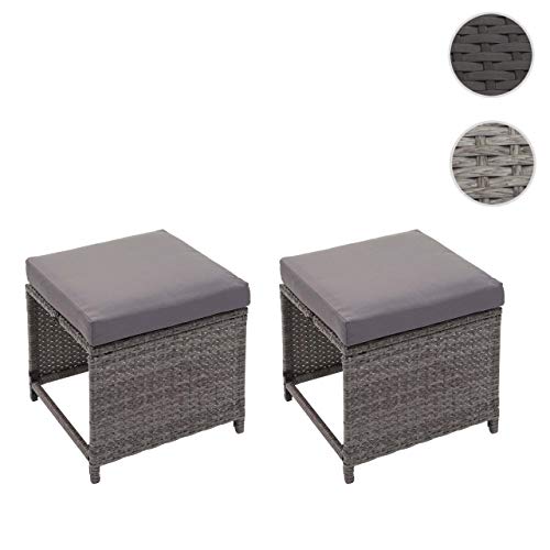 Mendler Set 2X sgabelli Pouf poggiapiedi da Esterno HWC-G16 polyrattan Grigio Cuscino Grigio Scuro