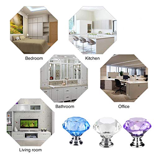 Mengger Pomelli cristallo per Mobili Cassetti Manopole maniglia mobilia Armadi 12 Pezzi 30 mm con viti Vetro Trasparenti Maniglie porte Armadio Muro