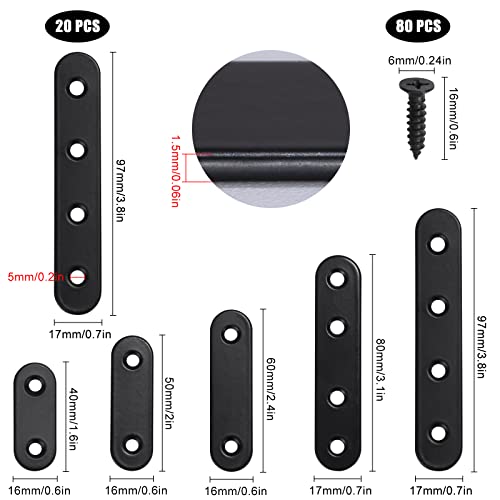 MengH-SHOP Staffe Angolari Piatte Supporti Angolo Retto Staffe in Acciaio Squadrette con Viti per Mensola di Legno Tavolo Sedia 97 * 17mm Nero 20 Pezzi