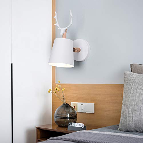 Mengjay Creativo Applique da Parete Moderno Lampada da Parete Semplice Lampada a Muro E27 Testa di Cervo Nordico Stile Art Deco per Camera da Letto dei Bambini, Ristorante, Corridoio, Scale (Bianco)