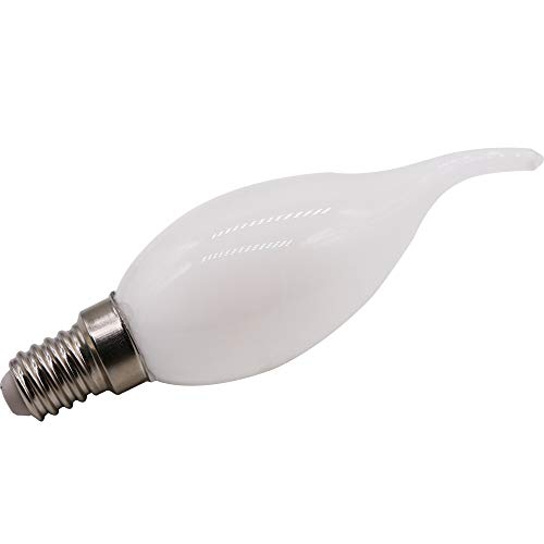 Mengjay Lampada LED a filamento in vetro di latte da 5 W, luce bianca fredda 6000 K-7000 K, E14, punta curva a fiamma, non dimmerabile, corrente alternata 220 V (10 pezzi)
