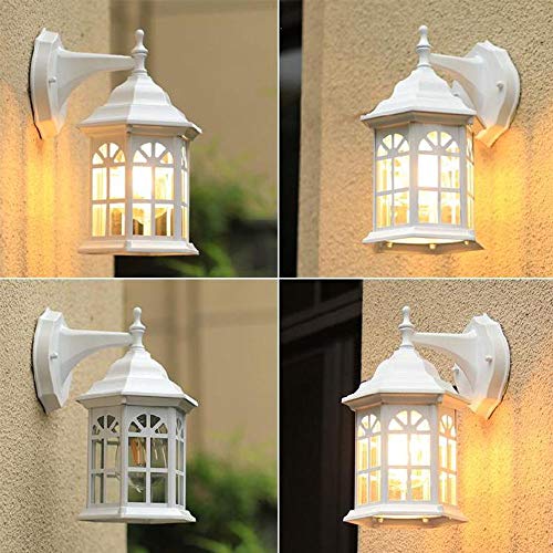 Mengjay Lampada da parete in alluminio antico Rustico stile E27 illuminazione esterna Balcone Casa Giardino,Lampada per esterni Impermeabile Lampada da parete da esterno,Bianca