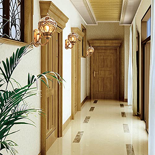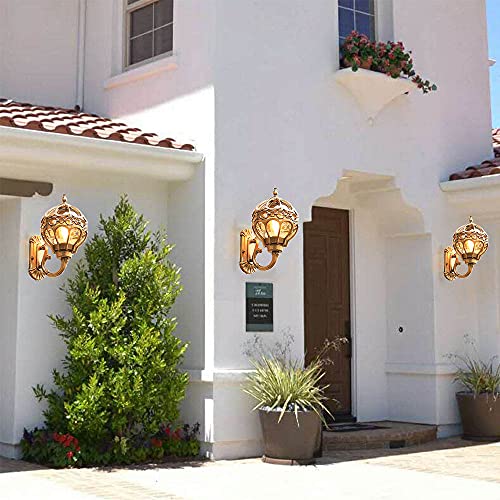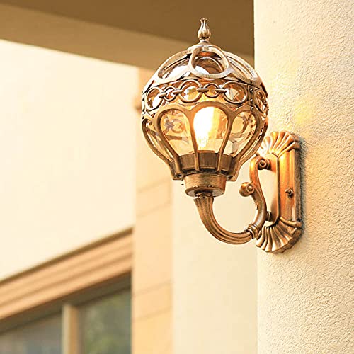 Mengjay Lampada da parete in alluminio antico Rustico stile E27 illuminazione esterna Balcone Casa Giardino,Lampada per esterni Impermeabile Lampada da parete da esterno,D'oro