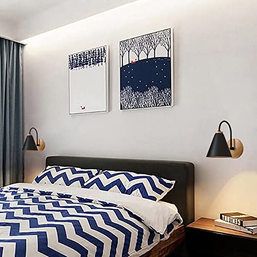 Mengjay Lampada da Parete, Applique da Parete in Legno Metallo, Vintage Lampada da Parete Interno E27 per Soggiorno, Corridoio, Camera