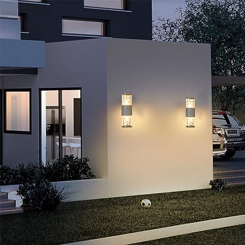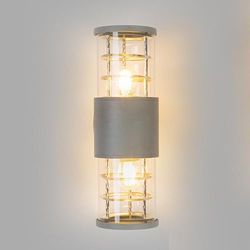Mengjay Lampada Da Parete Per Esterni,Applique da parete esterna impermeabile in alluminio E27,Up Down Lampada da Parete Esterni,per Esterno Muro Portico Corridoio Terrazza (Gris)
