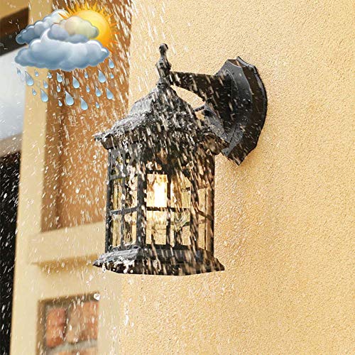 Mengjay Lampada da Parete per Esterni Europea Classica Tradizionale, Applique da Parete in Alluminio Impermeabile, Lampadina con attacco E27 Applique per Giardino terrazza cortile (Nero)