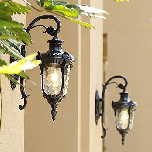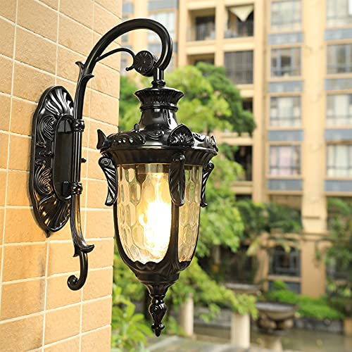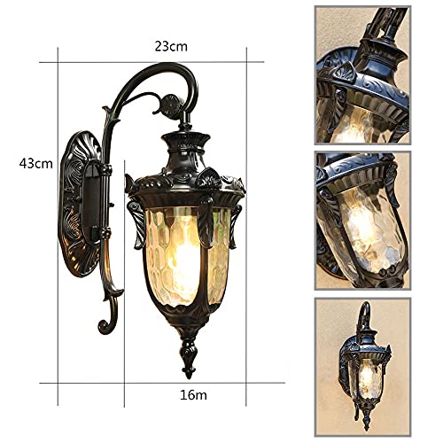 Mengjay Lampada da parete esterni impermeabile Villa paesaggio della decorazione della lampada del giardino Lanterna Retrò E27 Applique da parete all'aperto europea per esterni in alluminio vetro (C)