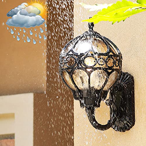 Mengjay Lampada da parete impermeabile per esterni, E27 Applique rustica lanterna del metallo della parete impermeabile Decorati per giardino cortile balcone giardino (nessuna lampadina) (Nero)
