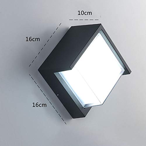 Mengjay 12W Lampada da Parete per Interno/esterno,Applique da Parete Impermeabile IP65 Lampada Muro in Alluminio+acrilico,6000K Bianco freddo,nero
