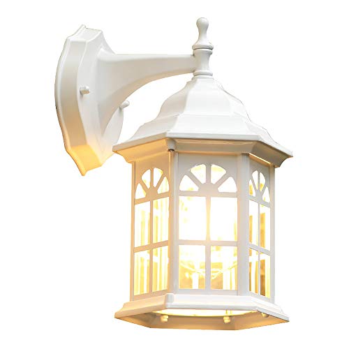 Mengjay Lampada da parete rustica in alluminio 230V nero e lampada da parete in vetro per giardino terrazza percorso giardino percorso terrazza lampade da esterno (Bianco)