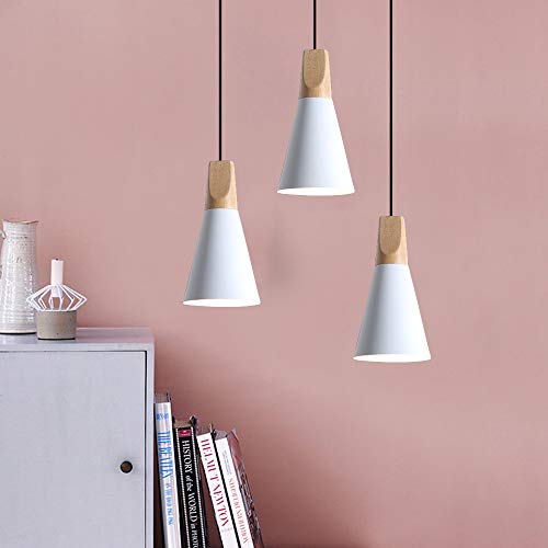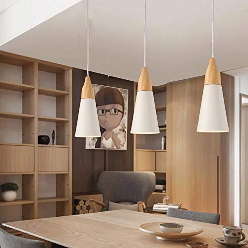 Mengjay E27 Lampada a sospensione in legno e metallo Interna Illuminazione da soffitto industriale Deco Lampada lampadario di alluminio lampada regolabile in altezza per Lounge Ristoranti