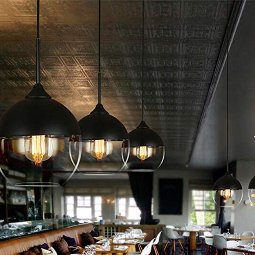 Mengjay Lampada a Sospensione Vintage Luce Pendente Retro Paralume Glass Lampadario Industrial Luce di Soffitto E27 Per Cucina Sala/Tavolo da Pranzo Loft Camera da Letto Caffè Bar/Ø20 cm
