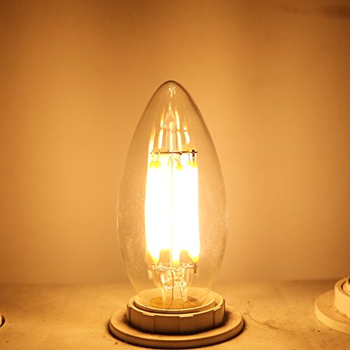 Lampadina a filamenti LED E14 da 6 W che sostituisce una lampadina da 50 W, ottima illuminazione, con protezione per gli occhi e angolo di irradiazione di 360°, per cui la luce si diffonde ovunque.