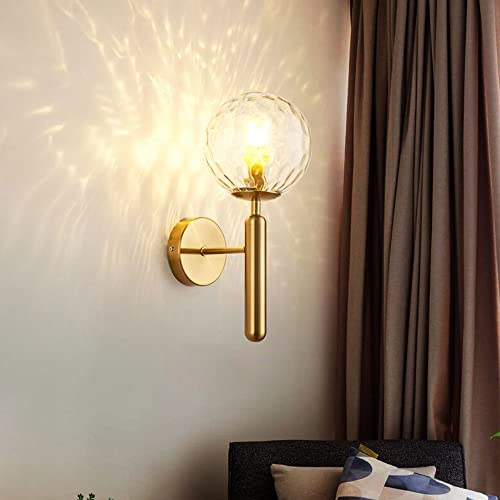 Mengjay Nordic moderno Lampada da parete a sfera in vetro latteo Lampada da comodino da interno Applique in metallo dorato con luce bianca Lampadina LED E27 Foyer Sala da pranzo. (Trasparente)