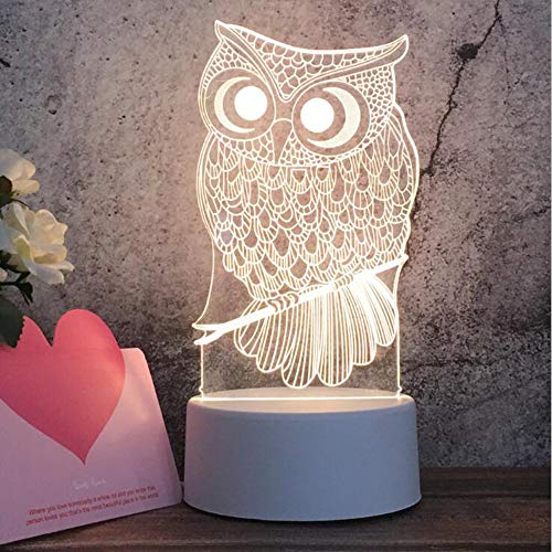 Mengjay Luce notturna 3D a forma di gufo. Lampada da notte illusione 3D con simpatico design gufo. Lampada da scrivania in acrilico, idea regalo per gli amanti degli animali.10 * 16cm (Gufo)