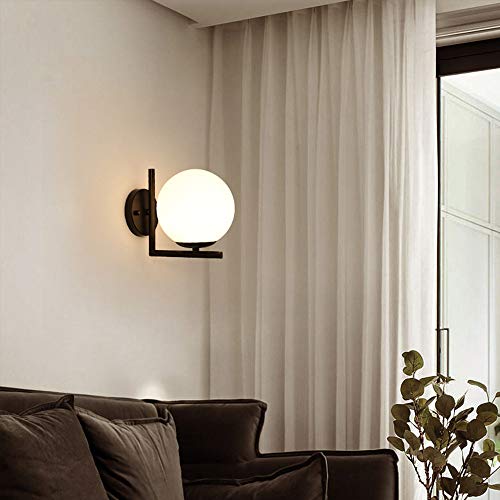 Mengjay LED Luci sfera di vetro Lampade da parete, lampada moderna da interni,Applique da parete Interno per camera da letto, soggiorno, corridoio(Nero)