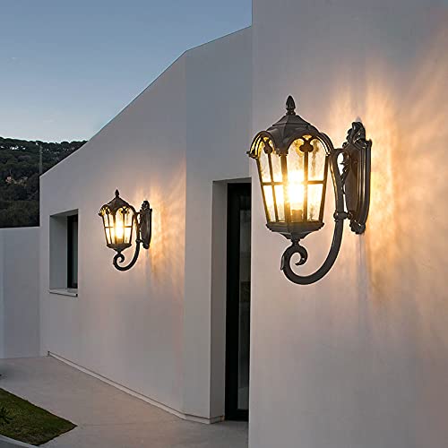 Mengjay Trade Applique per esterni, E27 Nero Lampada da parete rustica lanterna del metallo della parete impermeabile Decorati per giardino cortile balcone giardino (nessuna lampadina)