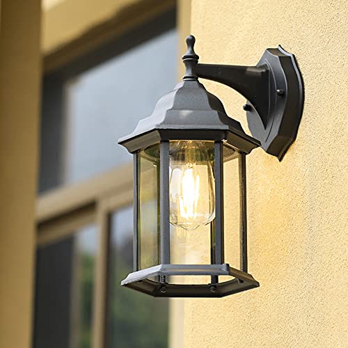 Mengjay Trade Lampada da parete da esterno rustica in nero antico IP44 E27 fino a 60W 230V lampada da parete da esterno resistente alle intemperie. (Stile C)