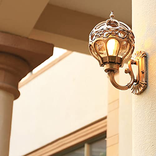 Mengjay Trade Lampada da parete impermeabile per esterni, E27 Applique rustica lanterna del metallo della parete impermeabile Decorati per giardino cortile balcone giardino (nessuna lampadina) (Rame)