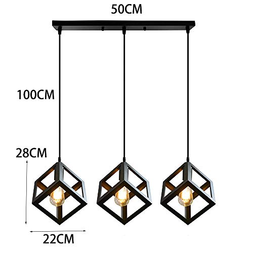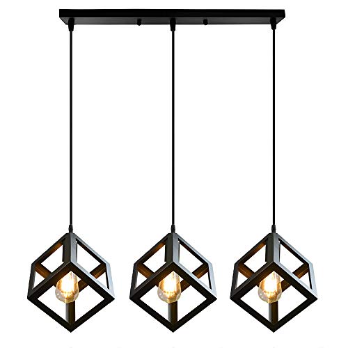 Mengjay Trade Lampada a Sospensione Vintage Industriale Moderno Cubo Creativo Battuto Lampadario in Ferro Adatto per camera da letto, soggiorno, sala da pranzo e un da cucina, E27*3, Nero