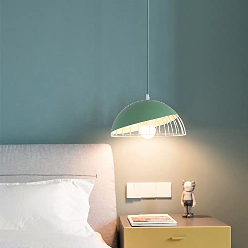 Mengjay Trade E27 Semplice Moderno Illuminazione a Sospensione Battuto lampadario in ferro Lampada Sospensione in Metallo Creativo Luci a Sospensione Regolabili Lampadari per Sale da Pranzo(Verde)