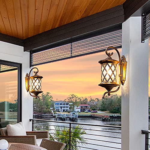 Mengjay Trade Vintage Retro Lampada da parete per esterni Impermeabile IP44 Lampada da esterno Nero Antico Alluminio pressofuso Vetro Lampada da parete E27 per cortile, balcone, giardino, corridoio